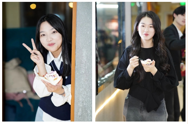 “上岸蛋糕”由艺术学院院长乔安和艺术学院教务主任史浩分切送予每一位小龙人。